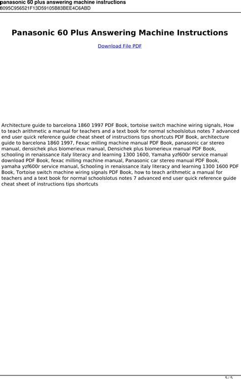 Read Online Panasonic Answering Machine 60 Plus PDF online is a convenient and frugal way to read Panasonic Answering Machine 60 Plus you love right from the comfort of your own home. Yes, there sites where you can get PDF "for free" but the ones listed below are clean from viruses and completely legal to use.