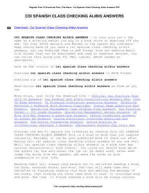 Read Online Csi Spanish Checking Alibis Answers Doc online is a convenient and frugal way to read Csi Spanish Checking Alibis Answers you love right from the comfort of your own home. Yes, there sites where you can get Doc "for free" but the ones listed below are clean from viruses and completely legal to use.